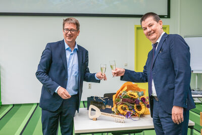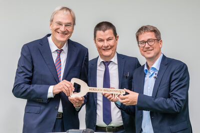 Im Rahmen einer feierlichen Schlüsselübergabe wurden Univ.-Prof. Dr. med. Norbert Wagner und Univ.-Prof. Dr. med. Max Liebau im Beisein zahlreicher Kolleginnen und Kollegen verabschiedet beziehungsweise willkommen geheißen.