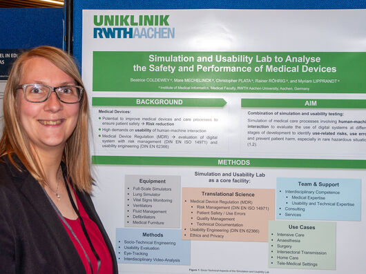 Porträt einer Frau mit schulterlangen rotbraunen Haaren. Sie lächelt und trägt einen weißen Arztkittel.