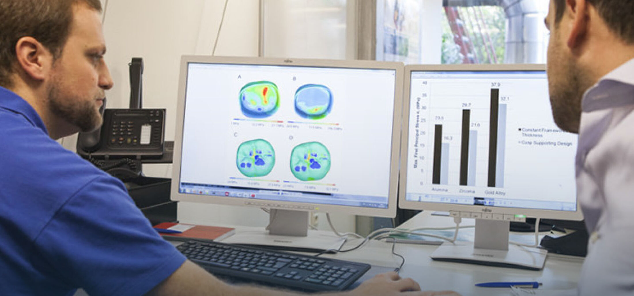 Das Team im Lehr- und Forschungsgebiet Zahnärztliche Werkstoffkunde und Biomaterialforschung (ZWBF) entwickelt neuartige Biowerkstoffe mit Hilfe von Techniken des Tissue Engineering. Aufgrund der fachübergreifenden Thematik arbeiten in unserem Team Wissenschaftler unterschiedlicher Disziplinen eng zusammen. Ein Schwerpunkt des Forscherteams ist das 3D Tissue Engineering. Mit neuartigen Bioprinting-Techniken kann Gewebeersatz aus körpereigenen Zellen, eingebettet in maßgeschneiderte Hydrogele, in Form von dreidimensionalen Konstrukten im Zentimetermaßstab hergestellt werden. Daraus ergeben sich ganz neue Möglichkeiten für die Transplantationschirurgie. Außerdem realisieren wir mittels Bioprinting-Techniken neuartige, biomimetische 3D In-vitro-Modelle. Diese auch als Organ-on-a-chip bezeichneten Modelle können zur Erforschung grundlegender wissenschaftlicher Fragestellungen genutzt werden. Darüber hinaus sind sie im Bereich der angewandten Forschung und Entwicklung als Screening-Plattform für neue Medikamente von großem Interesse. Des Weiteren forscht die Arbeitsgruppe intensiv an der Verbesserung von Biowerkstoffen für Dauerimplantate. Wichtige Fragestellungen in diesem Zusammenhang sind die Oberflächenfunktionalisierung zur schnelleren und dauerhaften Osseointegration sowie die mechanische Langzeitzuverlässigkeit und Lebensdauer im klinischen Einsatz. Bei der Erforschung neuer Lösungsansätze kommen hierbei neben speziellen experimentellen Prüftechniken auch Werkzeuge der numerischen Simulation zum Einsatz.