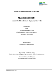 Der Qualitätsbericht basiert auf den Vorgaben der G-BA Zentrums-Regelungen und stellt die Entwicklungen des ZSEA im Berichtsjahr 2024 dar.