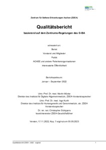 Der Qualitätsbericht basiert auf den Vorgaben der G-BA Zentrums-Regelungen und stellt die Entwicklungen des ZSEA im Berichtsjahr 2022 dar.