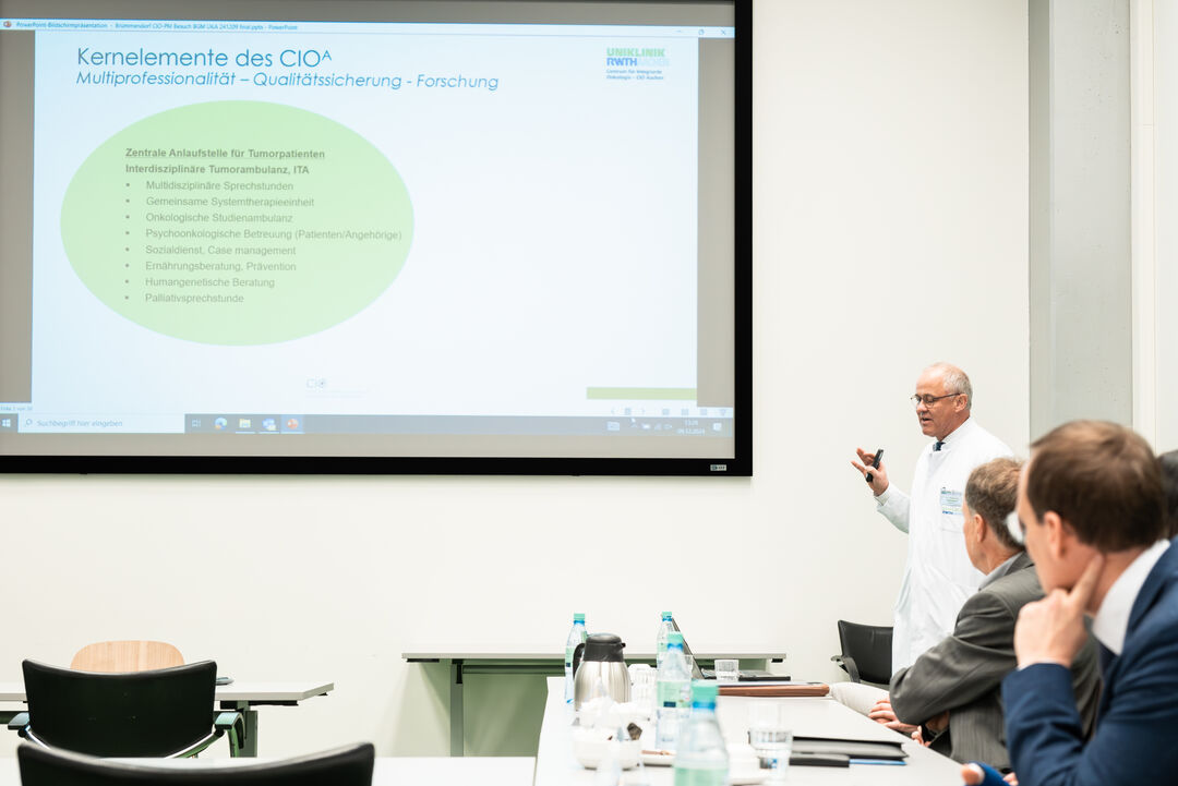 Der Besuch umfasste zudem die Live-Demonstration einer Televisite in einer Zweigstelle des Aachener Telemedizinzentrums. Ein weiterer thematischer Schwerpunkt des Besuchs war die molekulare Präzisionsmedizin und ihre Organisation im Verband des Centrums für Integrierte Onkologie (CIO) – Aachen-Bonn-Köln-Düsseldorf. Im Rahmen dessen besichtigte Prof. Lauterbach die Biomaterialbank des Instituts für Pathologie.