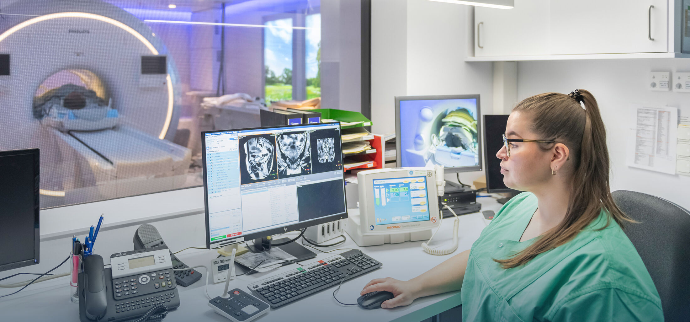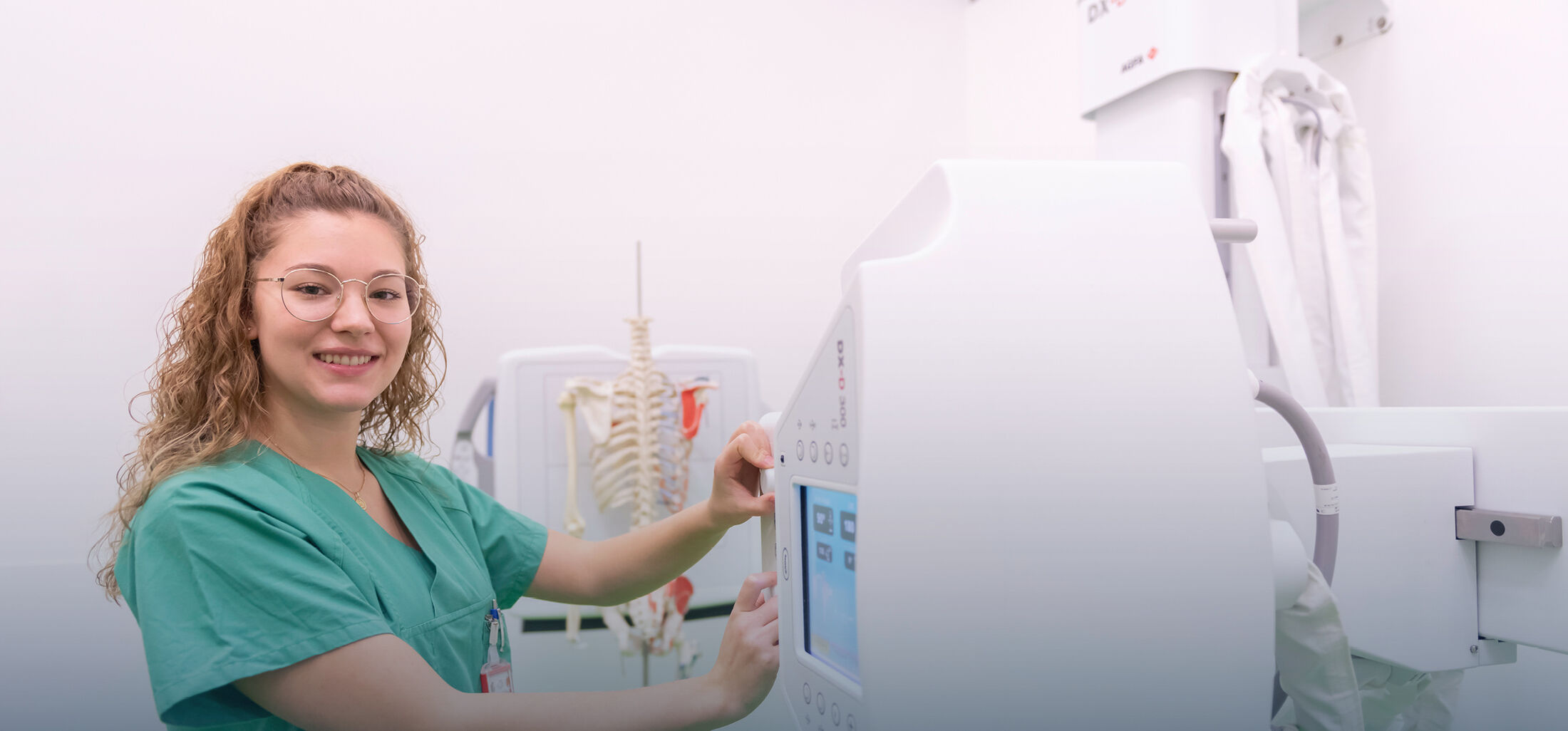Als MTR nimmst du in der Radiologischen Diagnostik Knochen, Organe und Gefäße mit Röntgen- und Großgeräten wie Computer- und Magnetresonanztomographen auf. In der Nuklearmedizin kannst du mithilfe radioaktiver Substanzen den Stoffwechsel eines Organs mit hochtechnischen Geräten aufzeichnen und Organerkrankungen aufdecken. In der Strahlentherapie behandelst du Patienten, die meistens an einer bösartigen Tumorerkrankung leiden. Du brauchst für deinen Beruf gute Kenntnisse der menschlichen Anatomie und fundierte physikalisch-technische Grundlagen. Außerdem ist es von großer Bedeutung und zum Wohle des Patienten, dass Patient, Facharzt und MTRA als Team eng zusammenarbeiten.