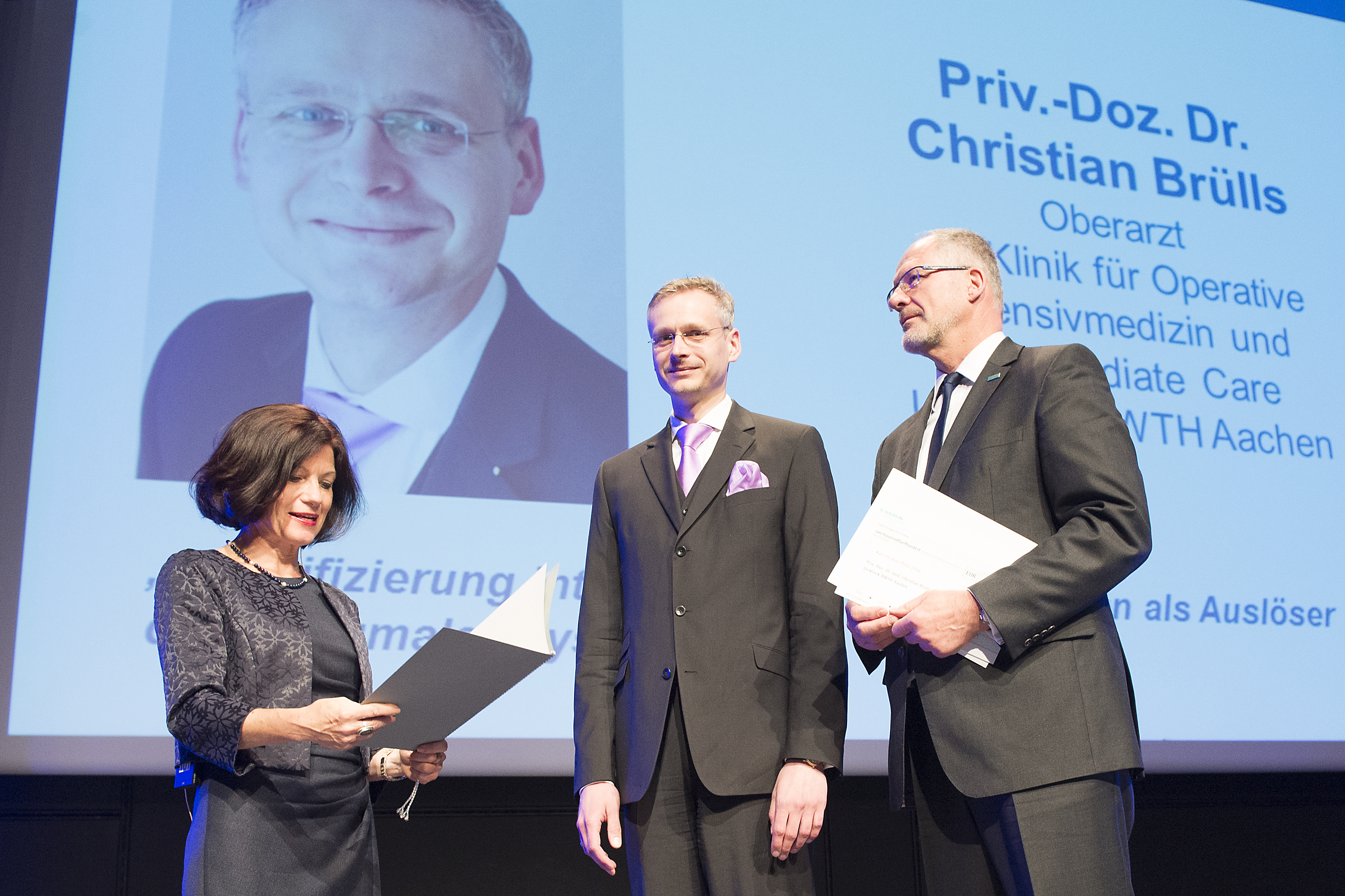 Priv.-Doz. Dr. med. Christian Brülls, Oberarzt an der Klinik für Operative Intensivmedizin und Intermediate Care an der Uniklinik RWTH Aachen, hat auf dem diesjährigen Deutschen Anästhesiecongress (DAC) den Karl-Thomas-Preis 2016 für seine Habilitationschrift „Intensivmedizinische Faktoren als Auslöser einer Diaphragmalen Dysfunktion“ erhalten. Der mit 2.500 Euro dotierte Preis wurde durch die Präsidentin der Deutschen Gesellschaft für Anästhesie und Intensivmedizin, Univ.-Prof. Dr. med. Thea Koch, im April verliehen.