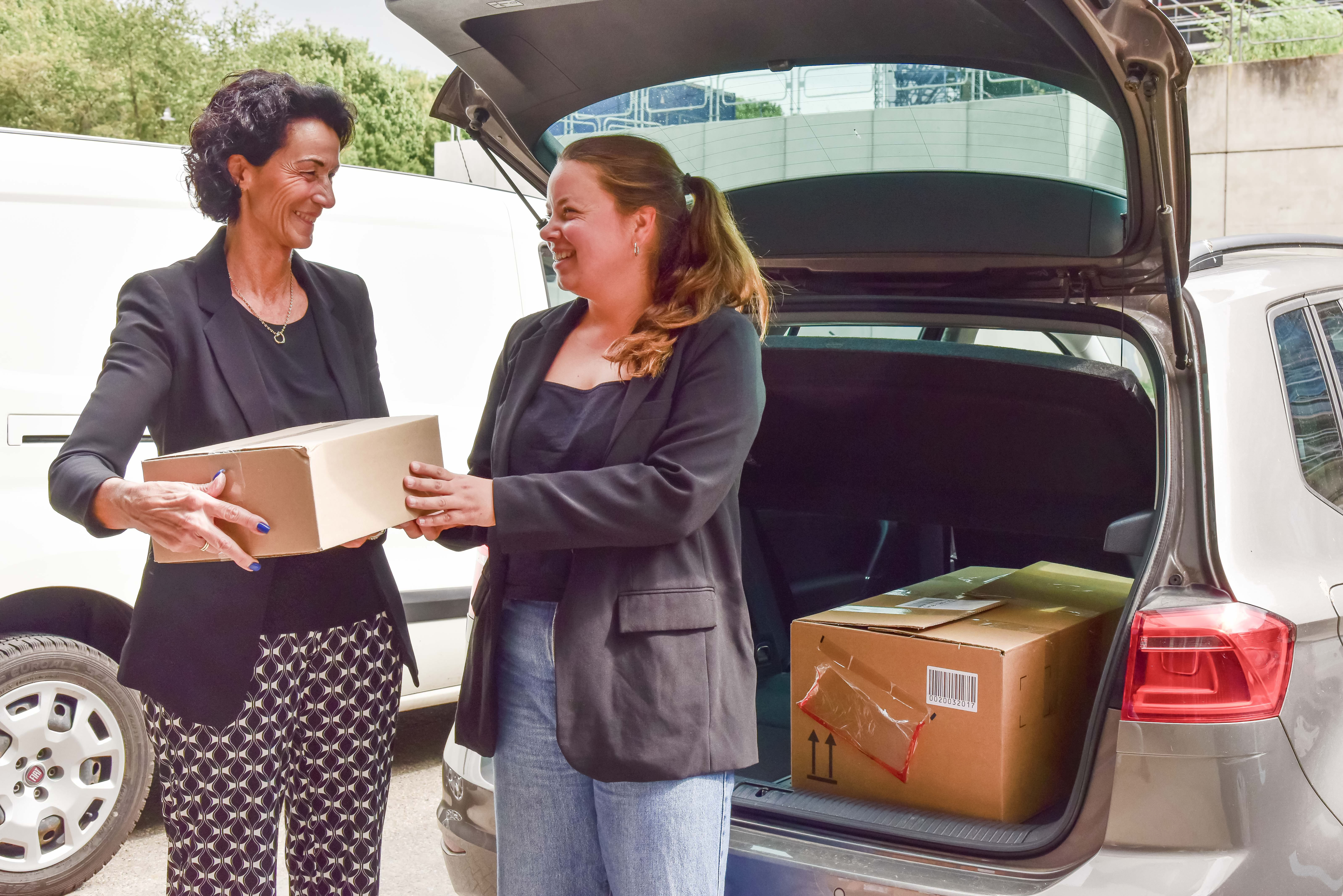 Das gesammelte medizinische Equipment besteht hauptsächlich aus Verbandmaterial, Spritzen, Kanülen und Pflastern. Eingepackt in große Kartons konnte Verena Banszerus die Spende im Zentrallager des Hauses entgegennehmen. Dabei wurde sie von Frau Maria Pluymackers empfangen und zu der erfolgreichen Spendenaktion beglückwünscht.