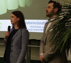 Als letzter Vortrag dieses lehrreichen Fortbildungstages folgte die Fallpräsentation „Xerostomie – Herausforderungen bei komplexen oralen Rehabilitationen“ von Dr. med. dent. Lukas Waltenberger (Funktionsoberarzt der Klinik für zahnärztliche Prothetik, Uniklinik RWTH Aachen) und Dr. med. dent. Katharina Schaffrath (Fachzahnärztin für Oralchirurgie, Klinik für Mund-, Kiefer- und Gesichtschirurgie, Uniklinik RWTH Aachen). Thema des Vortrags war die Belastung von Betroffenen durch Xerostomie, ein häufiges Symptom, das sowohl die Lebensqualität als auch die Mundgesundheit erheblich beeinträchtigen kann. Ein zentraler Aspekt des Vortrags war die Erläuterung der Ursachen von Xerostomie und deren objektive Erfassung. Zur besseren Erfassung und Bewertung wurde der "Clinical Oral Dryness Score" vorgestellt, ein systematisches Bewertungssystem, das dabei hilft, die Schwere der Xerostomie zu quantifizieren. Anhand eines Patientenfalls einer Tumorpatientin wurde die Anwendung dieses Scores in der Praxis anschaulich erläutert. Im zweiten Teil des Vortrags ging Dr. Waltenberger auf die besonderen Herausforderungen bei der prothetischen Rehabilitation von Xerostomie-Patienten ein. Besondere Schwierigkeiten ergeben sich durch die verkürzte Lebensdauer restaurativer Maßnahmen und die Notwendigkeit intensiver Präventionsprotokolle, um die Mundgesundheit der Patientinnen zu stabilisieren und langfristig zu erhalten. Dies verdeutlichte er mit einem schönen Patientenfall.