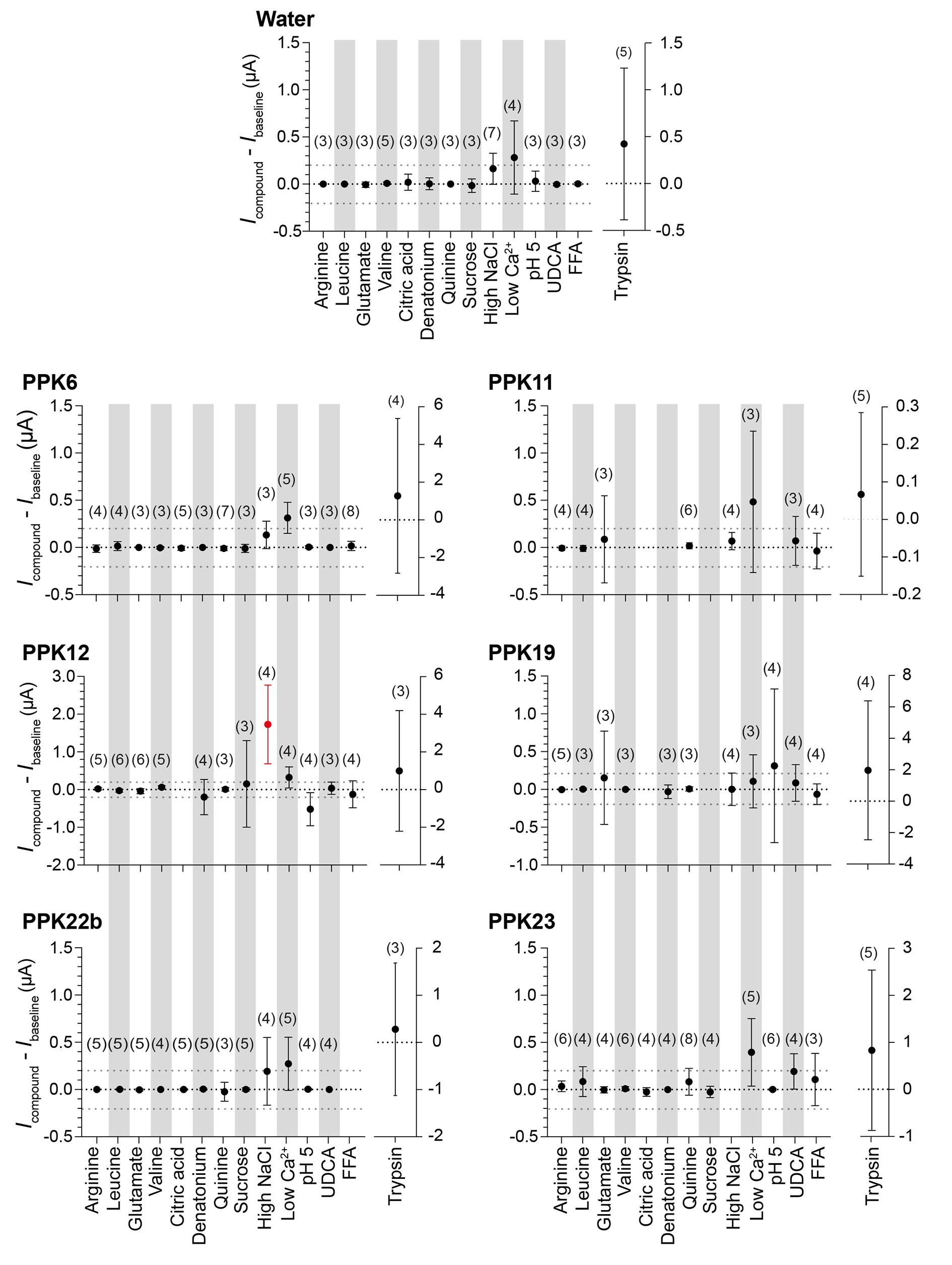 The fruit fly Drosophila melanogaster is an important model organism. It contains an ion channel family, termed PPKs, with homology to ASICs and ENaC in humans. In our last study, which was performed in collaboration with the group of Simon Sprecher from the University of Fribourg, Switzerland, and which was published in Scientific Reports (click here to view the article), we have functionally characterized PPK12 in a heterologous expression system. We discovered that PPK12 is a constitutively open sodium channel with a low sodium affinity. This property allows PPK12 to detect and differentiate also high concentrations of sodium. Therefore, we speculate that PPK12 plays a role in detecting high concentrations of sodium salts. Moreover, our results show that PPKs are amenable to functional characterization in the oocyte expression system.