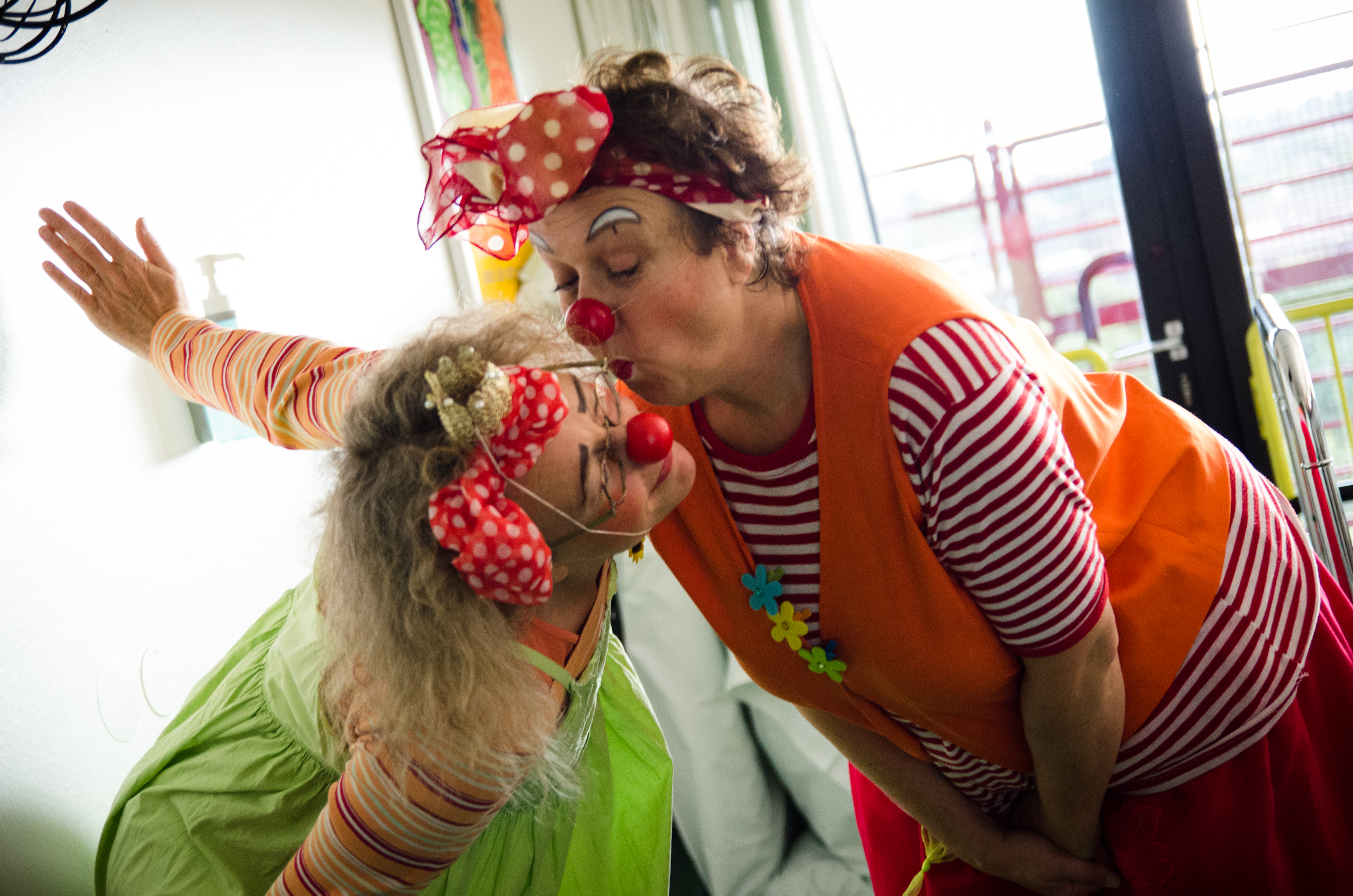 Schon seit geraumer Zeit begegnet man an zwei Tagen pro Woche auf den Fluren der Kinderklinik der Uniklinik RWTH Aachen den beiden Clowns Wilhelmine und Loretta. Der bloße Anblick entlockt schon ein Lächeln. Wenn sie dann spontan mit den kleinen Patienten der Kinderklinik ein Kochlöffelorchester gründen, die Zimmer schmücken oder Türen im Kung-Fu-Stil eintreten und flüsternd wieder schließen oder einfach nur Klamauk veranstalten, gibt es kein Halten mehr. Es wird gelacht und gestaunt.