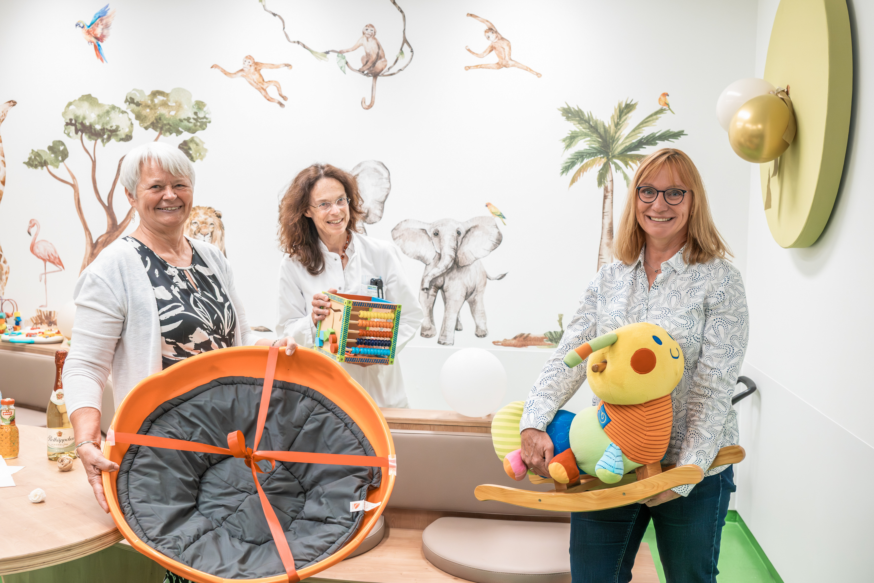 Ab dem heutigen Tag ist der Wartebereich für Eltern und Kinder nutzbar. Bei der Einweihung waren neben der Klinikdirektorin Univ.-Prof. Dr. med. Ulrike Herberg, die das Projekt praktisch umsetzte, auch die Vorsitzenden der Langenfelder Kinderherzhilfe gem. V. Margarete Bannert und Anke Kochems-Twardokus anwesend. „Wir sind regelmäßig auf der Suche nach weiteren kinderkadiologischen Kliniken in NRW, denen wir mit einer Spende helfen können, Kinderleben aktiv zu verbessern. Nach Solingen 2023 und Bonn 2024 haben wir uns entschieden, in diesem Jahr die Uniklinik RWTH Aachen zu unterstützen“, so Margarete Bannert. Das Engagement zahlt sich aus; Klinikdirektorin Prof. Herberg ist begeistert vom Ergebnis des Projekts: „Ich freue mich über die wunderschöne Rückzugmöglichkeit für unsere großen und kleinen Patienten – Warten wird zum Erlebnis!“
