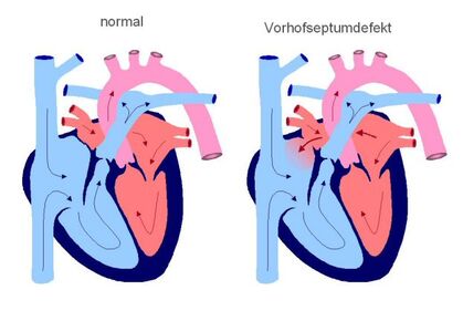 Normalerweise werden der rechte und linke Vorhof durch eine Vorhofscheidewand getrennt. Beim ASD fehlt ein Teil dieser Scheidewand. Dadurch tritt Blut vom linken zum rechten Vorhof über (Links-Rechts-Shunt).