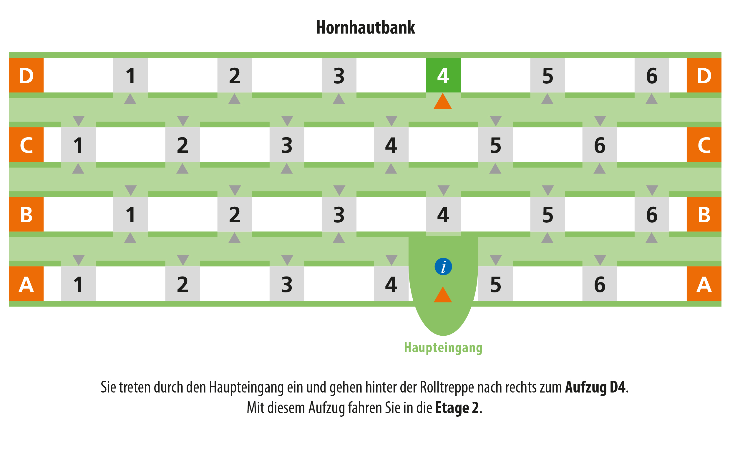 Die Klinik für Augenheilkunde finden Sie in der 3. Etage. An der Information am Haupteingang der Uniklinik können Sie einen genauen Plan des Hauses erhalten.