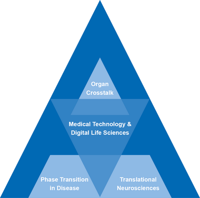 Die Medizinische Fakultät hat daher ihre bisherigen Schwerpunkte so weiterentwickelt, dass diese Aspekte zunehmend Eingang in medizinische Fragestellungen finden und aus dem Systemverständnis heraus neue diagnostische und therapeutische Optionen entstehen: