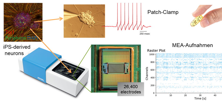 Die Schmerzforschung leidet aktuell an einem Translationsproblem: Pathomechanismen oder Therapien der Maus sind beim Menschen oft wirkungslos. In der Psychiatrie sind verlässliche präklinische Modelle selten. Daher ist ein menschliches zelluläres System unabdingbar. Wir arbeiten daher mit induzierten pluripotenten Stammzellen (iPS-Zellen) von Patienten und Probanden und generieren so sensorische periphere Neurone und zentrale Nervenzellen. Mit elektrophysiologischen Methoden untersuchen wir die Erregbarkeit – und damit die relevante Funktion – dieser Zellen und können so Konsequenzen von Genetik, Pharmakologie und anderen Manipulationen direkt in der funktionellen Pathophysiologie der Zellen ablesen. Hierbei interessieren uns vor allem periphere und neuropathische Schmerzsyndrome, aber auch Schizophrenie und Autismus.