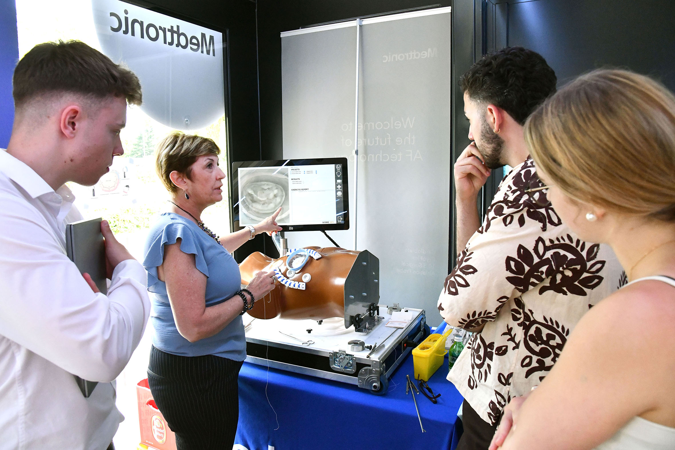 Das zweitägige Programm war ganz dem Fachgebiet der Herzchirurgie gewidmet: Den Besucherinnen und Besuchern bot sich unter anderem ein Walk-In, der einen Einblick in die minimalinvasive Chirurgie und Produkte der Herzchirurgie gab. An der sogenannten Echo-Station erhielten die Teilnehmenden einen Einblick in die Echokardiographie und konnten diese im Anschluss selbst praktisch durchführen. Zudem gab es die Möglichkeit, an insgesamt drei Simulatoren einen praktischen Kurs zur Demonstration und Schulung technischer Schritte bei minimalinvasiven Herzklappenoperationen zu absolvieren.