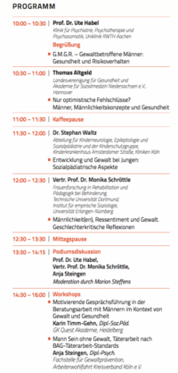 Wir freuen uns, Ihnen in Form eines Symposiums zum einen den aktuellen Stand des Projektes darstellen zu dürfen und ganz besonders darauf, durch Experten aus den verschiedensten Bereichen eine interdisziplinäre Perspektive und anregende Diskussion zum Thema „Gewalt – (M)ein Tabu – Männlichkeit zwischen Ressource und Risiko“ darbieten zu können.