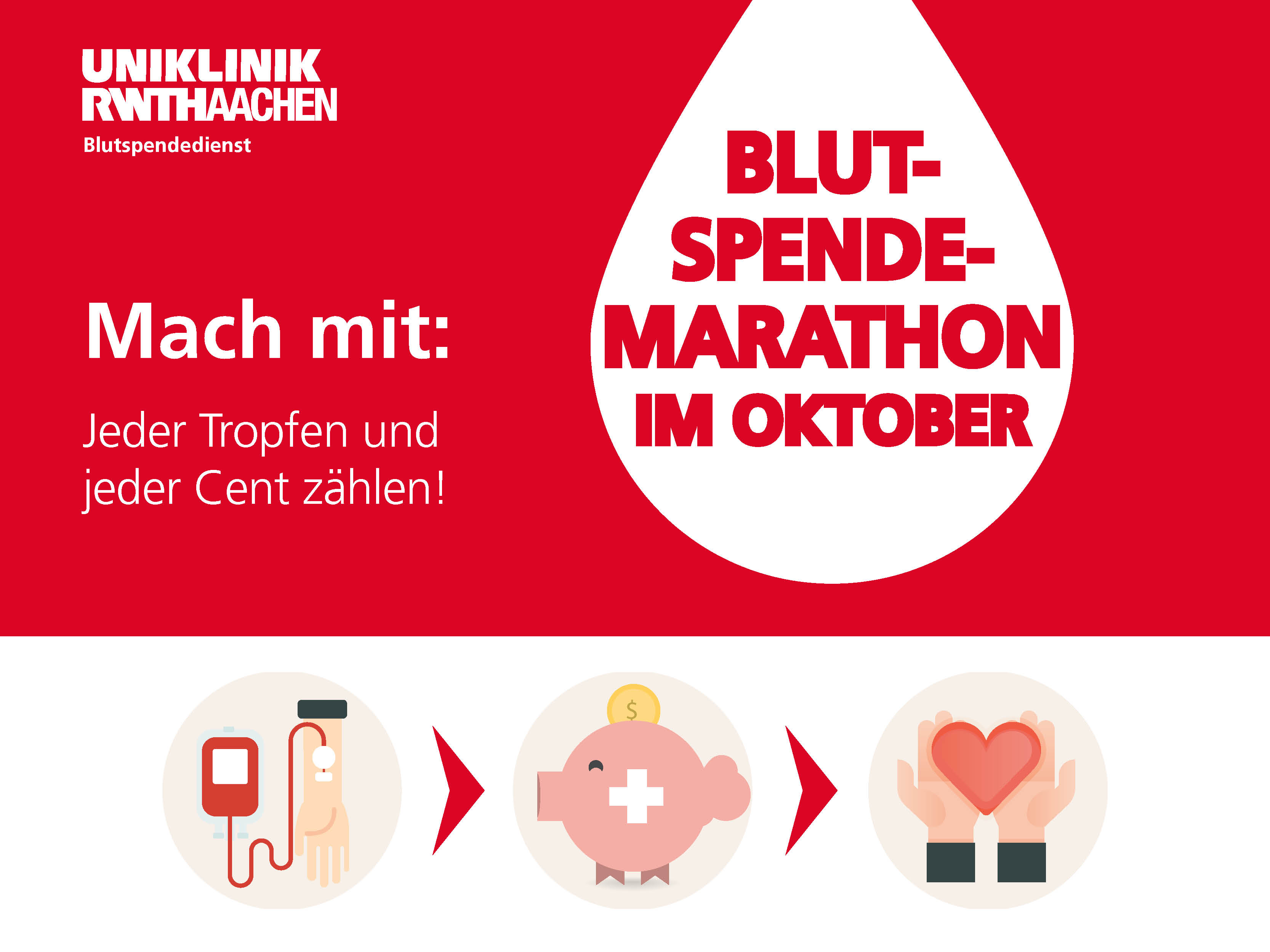 Wir wollen im Oktober so viele Blutspenderinnen und Blutspender wie möglich erreichen, denn: Pro Spender zahlen beim Blutspendemarathon verschiedene Unternehmen 50 Cent oder 1 Euro für das Projekt „Frühgeborenen-Trainingsmodell“ der Stiftung Universitätsmedizin Aachen. Und für alle Leckermäulchen: Es gibt auch viel Schokolade!