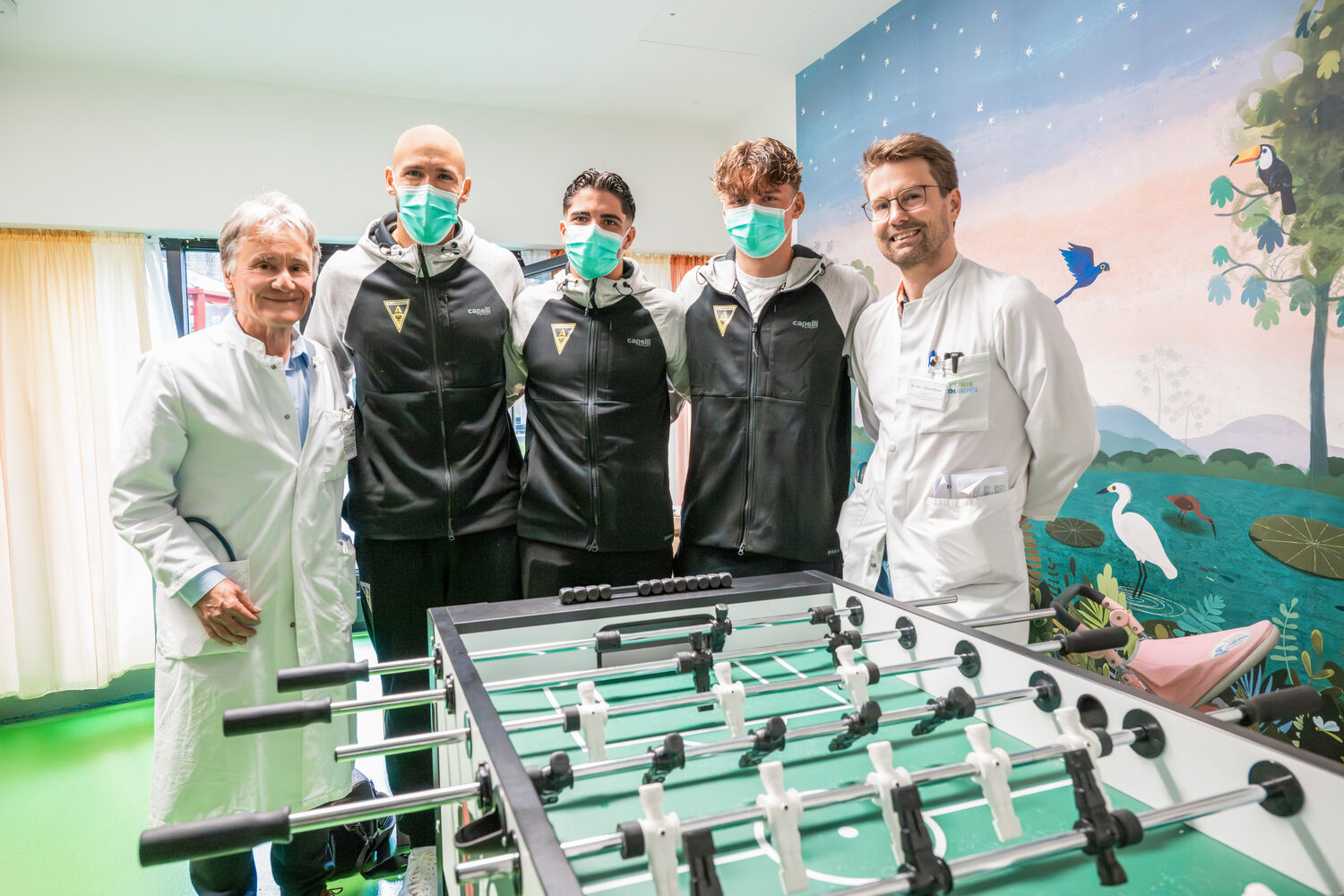 Zum Auftakt gab es eine Autogrammstunde, bei der die Patientinnen und Patienten nicht nur ihre Lieblingsspieler kennenlernen, sondern auch Autogramme ergattern konnten.